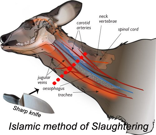 A swift, humane cut is made to allow rapid blood drainage